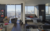 吹抜空間が特徴のデザイナーズ空間です。 メゾネットを活かした大開口からはスカイツリーが望め、どんなシーンでも高級感を演出しデザイナーズ空間を堪能できます。