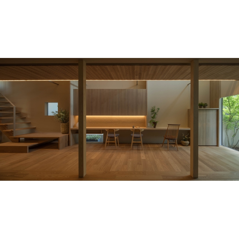 各階とも間仕切り壁の少ない一体空間とし、それらを吹抜で繋ぐ